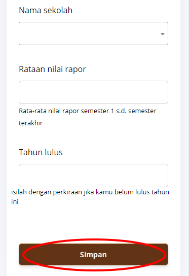 5. Tahun lulus diisi berdasarkan kelulusan dari sekolah. Contoh : jika saat ini kelas 11, maka tahun lulus adalah tahun 2021. Dan jika berminat untuk mendapatkan beasiswa Bidikmisi, silahkan diisi juga ya. Simpan daftar diri