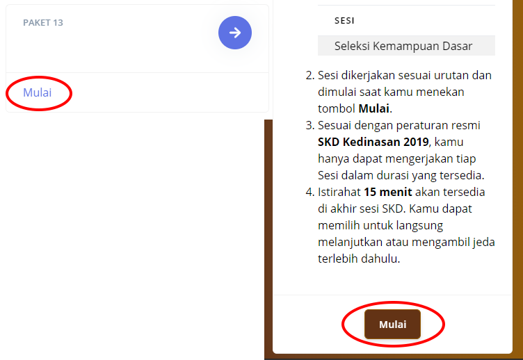 Kerjakan soal SKD sesuai dengan waktu yang telah ditentukan oleh sistem. Sisa waktu dapat dilihat di bagian kanan atas pada soal
